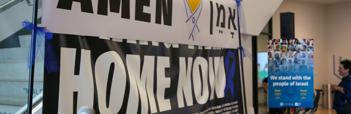 Two years ago – just days after the horrific events of October 7, 2023 – a large banner was put up on one side of the Weisberg Family Lobby at the Trager Family JCC. Bearing the names of the 251 hostages Hamas abducted into Gaza, the banner remained standing as days turned into weeks, weeks turned into months, and months turned into years. As long as hostages remained trapped in Hamas’s dank, dark tunnels, so would that display of names. It would come down only after all the hostages were liberated and reunited with their families.