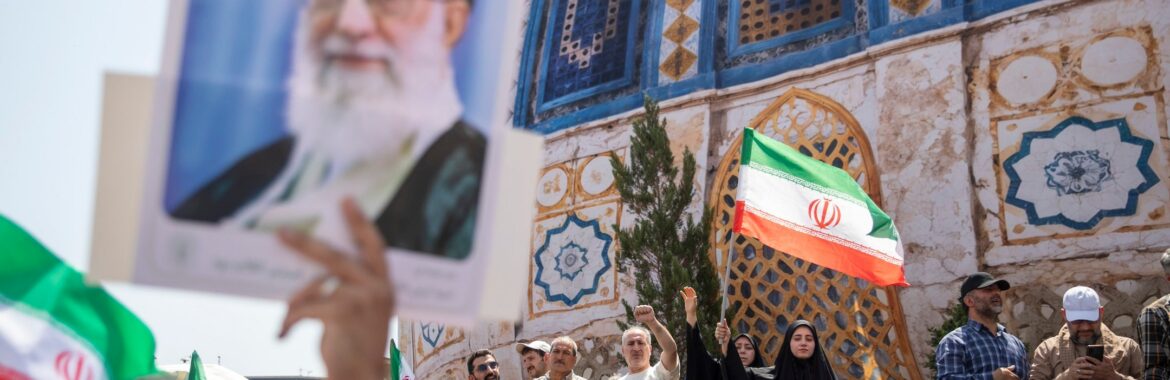 A demonstrator holds up a poster of Iran’s supreme leader, Ayatollah Ali Khamenei, during a protest against Israeli attacks on Iran, central Tehran, June 20, 2025. (Majid Saeedi/Getty Images)