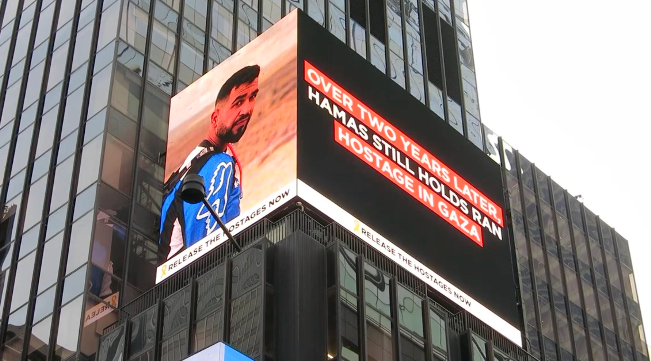 Last month, the American Jewish Committee launched its own billboard campaign in Times Square that featured a montage of the remaining hostages in Gaza. Today, the display only features Gvili.