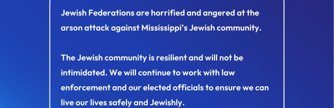 Statement from Jewish Federations of North America regarding the Jan. 10, 2026 arson attack on Jackson, Mississippi’s Beth Israel Congregation January 11, 2026